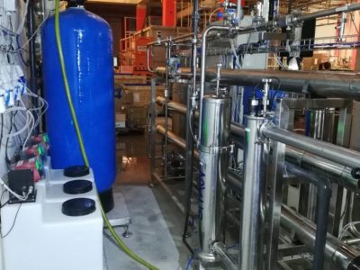 Priprema napojne vode za rashladni sistem pomoću reverzne osmoze je sa stanovišta operativnih troškova optimalnije u odnosu na omekšavanje. Ekonomske prednosti posebno dolaze do izražaja kod većih rashladnih sistema, kakvi su prisutni u industriji primarne prerade metala, kao što su: topionice, željezare, valjaonice. Na slici je prikazana linija za pripremu napojne vode za rashladni sistem kapaciteta 45 m3/h pomoću revezne osmoze. Linija se sastoji od predtretmana bunarske vode aeracijom pomoću aeratora tipa Fermaway i filtracije na multimedijalnim filterima - deferizatorima u cilju uklanjanja gvožđa, mangana i bistrenja vode. Isporučena je oprema za neophodni hemijski tretman rashladne vode proizvodima SUEZ- Water Technologies & Solutions, radi zaštite rashladnog sistema od korozije i naslaga kamenca, fouling a i mikrobiološkog zaprljanja. Rashladni sistemi su opremljeni automatskim sistemima za odsoljavanje.